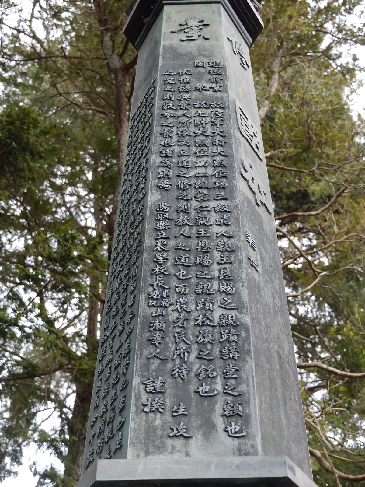 明治38年10月3日に創立25周年を祝うとともに建立された「徳業碑」(國本塔)。