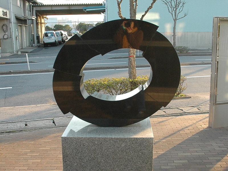 像の正面にバス停があるため、適度な距離で鑑賞することが難しい。