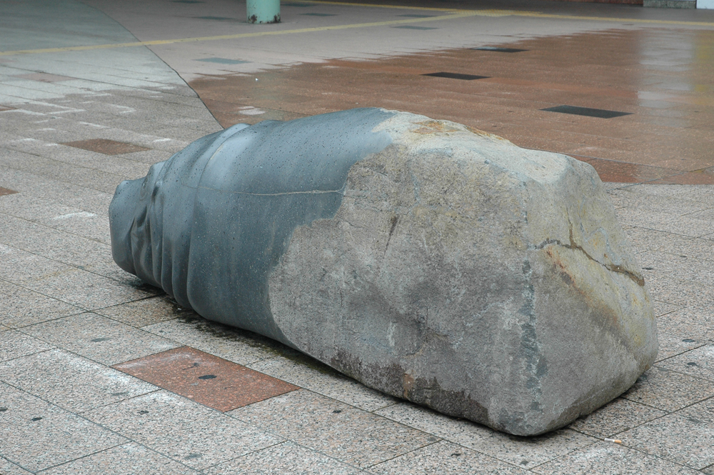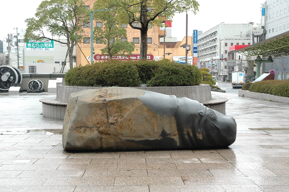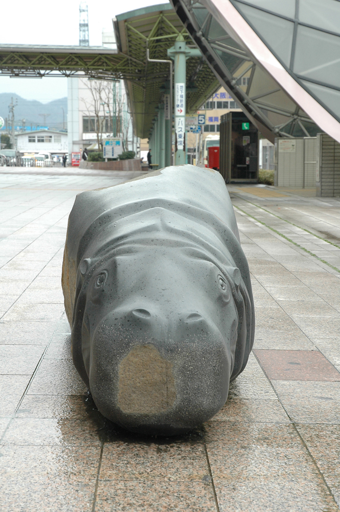 バス乗り場の方から見ると岩の塊にしか見えないが、ある方向から見ると愛嬌のある顔をしたカバだと気付く。こんなところにいるはずのないカバとの思わぬ出会いは、うれしくて楽しい気分にさせてくれる。