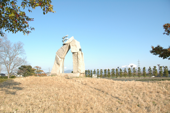 作品の周囲を歩いていると、スッポリ大山が入るポイントを発見。