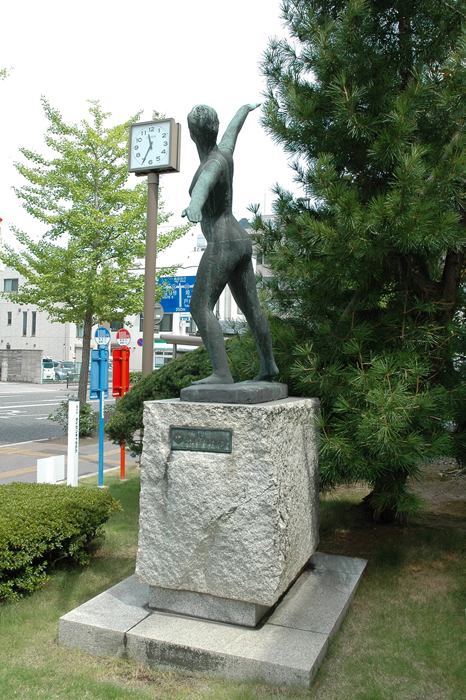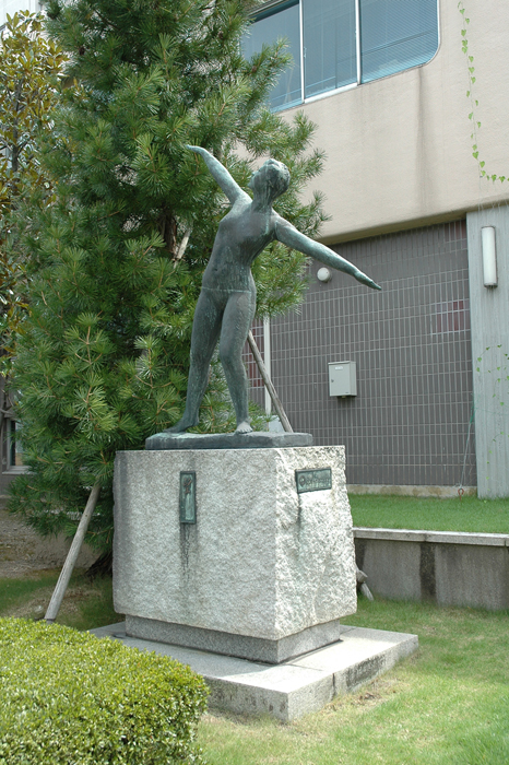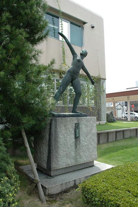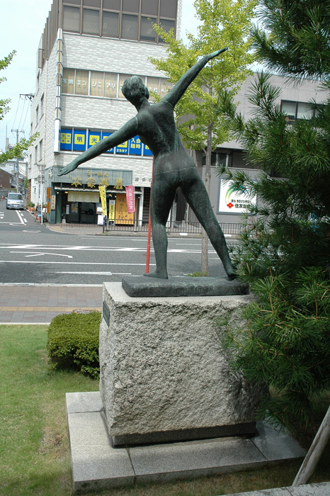植え込みも丁寧に手入れされている。大きく腕を左右にひらく動きから、もっと向こう、今よりもより良い姿をめざして進む象徴のようでもある。