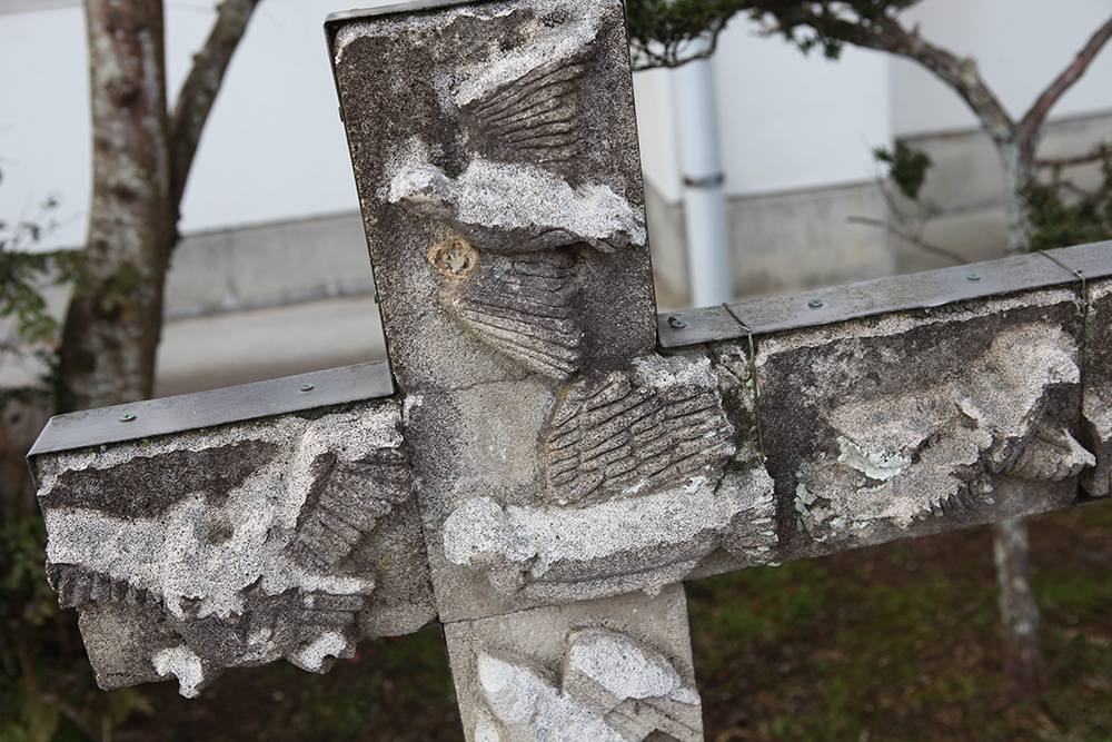 校舎正面花壇の中央付近に設置され、よく目立つ場所に設置されている。