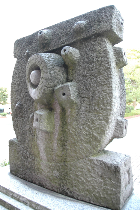 御影石という自然の素材と造形が絡み合って古代の文明で使われた道具が,現代に現れたかのような印象を受ける。