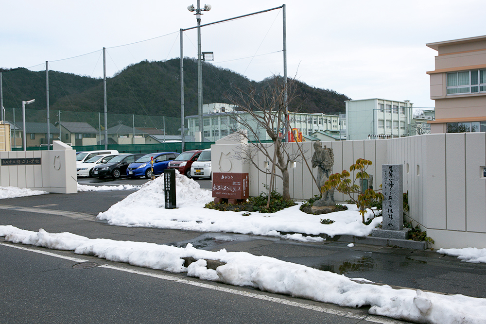 ほぼ等身像。台座も低く、子どもたちの視線と同じである。