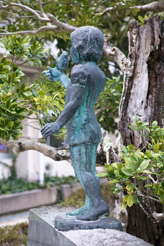 正門内側の植栽も中に設置されている。出入りする時には必ず目にとまる場所である。