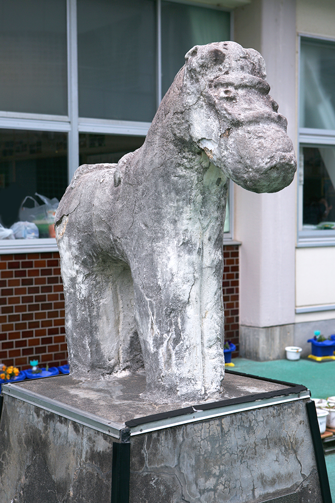 当時タイムカプセルを埋めた場所が分かりやすいようにという事で制作され、設置された像である。現在は地中のタイムカプセルは堀りおこされている。