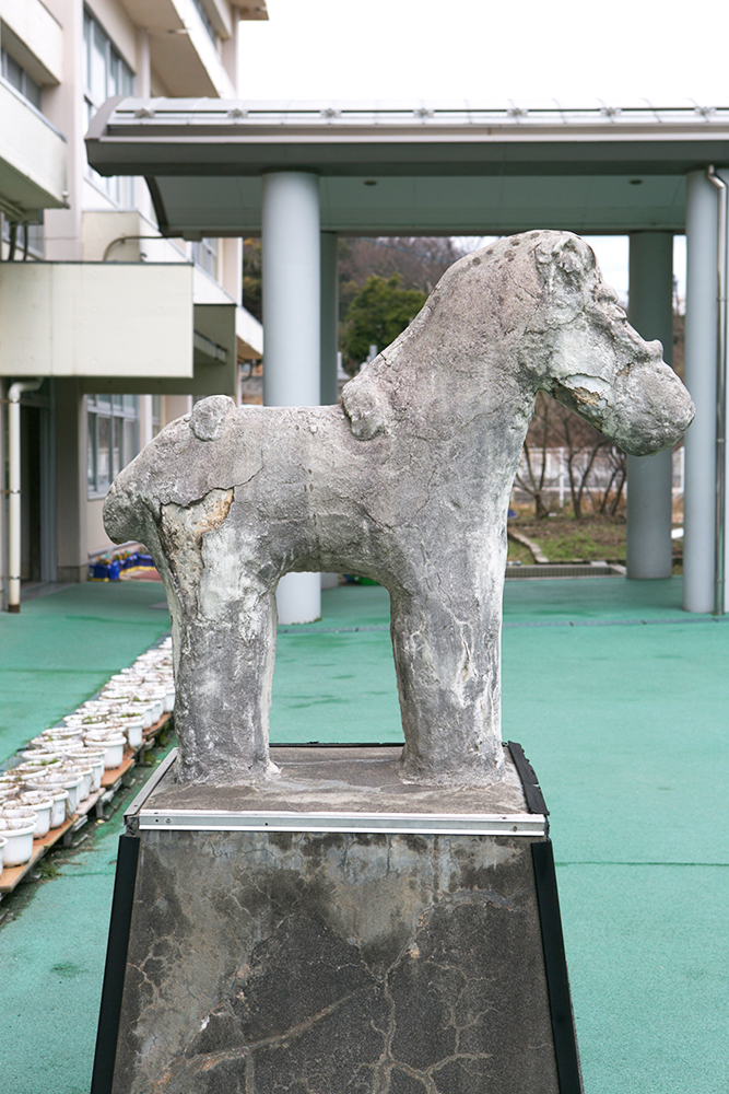 校舎中庭の中央にシンボリックな感じで設置されている。