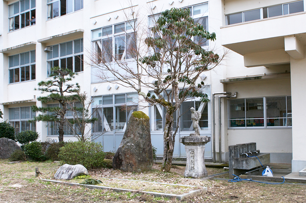 校舎中庭の校舎寄りの一角に設置されている。休憩時間などにはにぎやかになりそうな場所である。