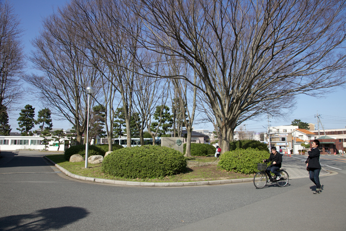 大学正門を入って大学本部横の植樹エリアに設置されている。ほとんどの学生や大学職員はこの前を通って、それぞれの学部棟に入って行き、また前を通って帰って行く。広いスペースに設置されているが、普段は立ち止まることは少なそう。この作品の周りでちょっと座って休むことができる(例えばベンチが置かれている)等の工夫があると、もっとこの作品の文などを読んでもらえるのではないか。