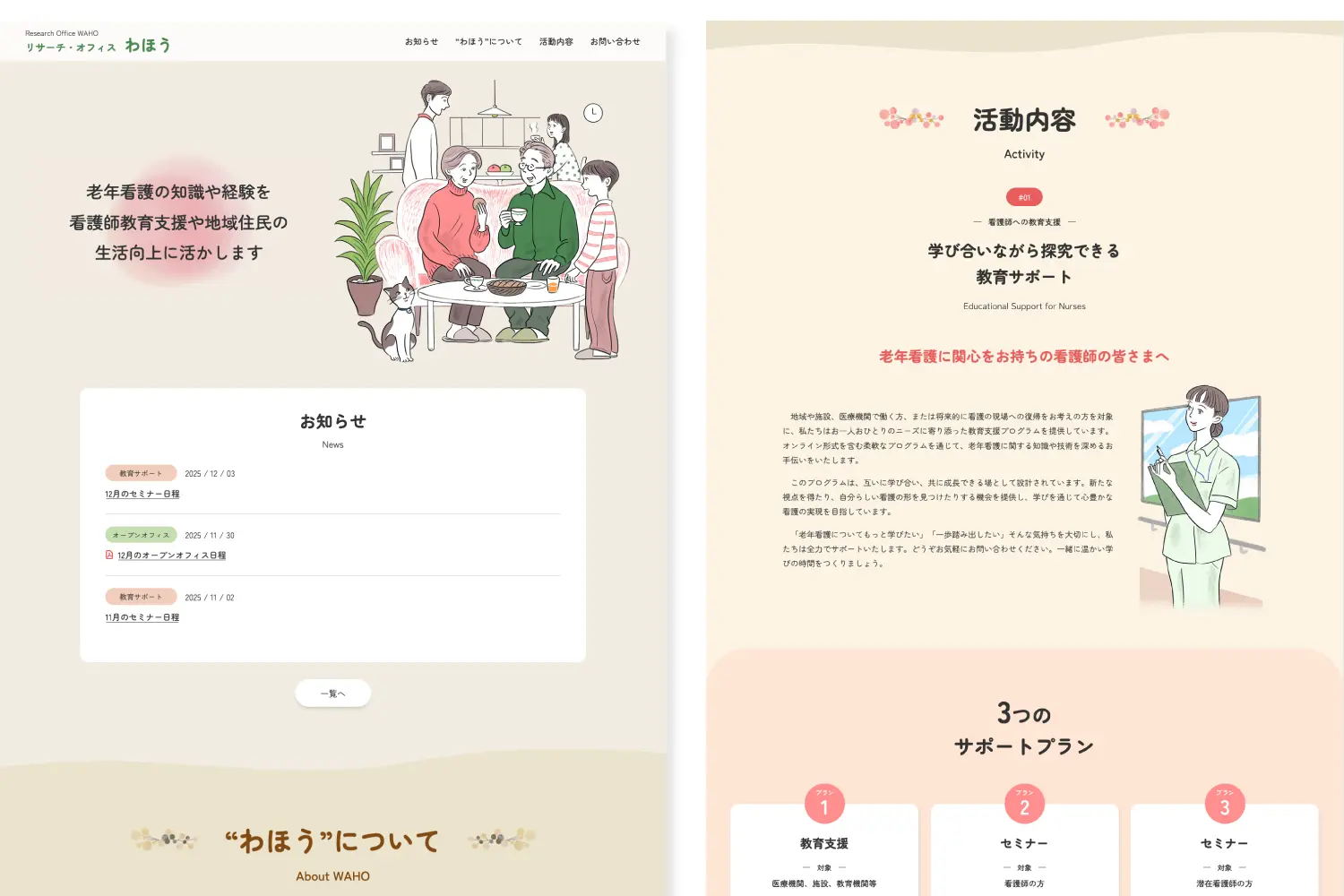 WEBサイトでは、その想いが伝わるよう、穏やかな色合いと温もりのあるデザインに。