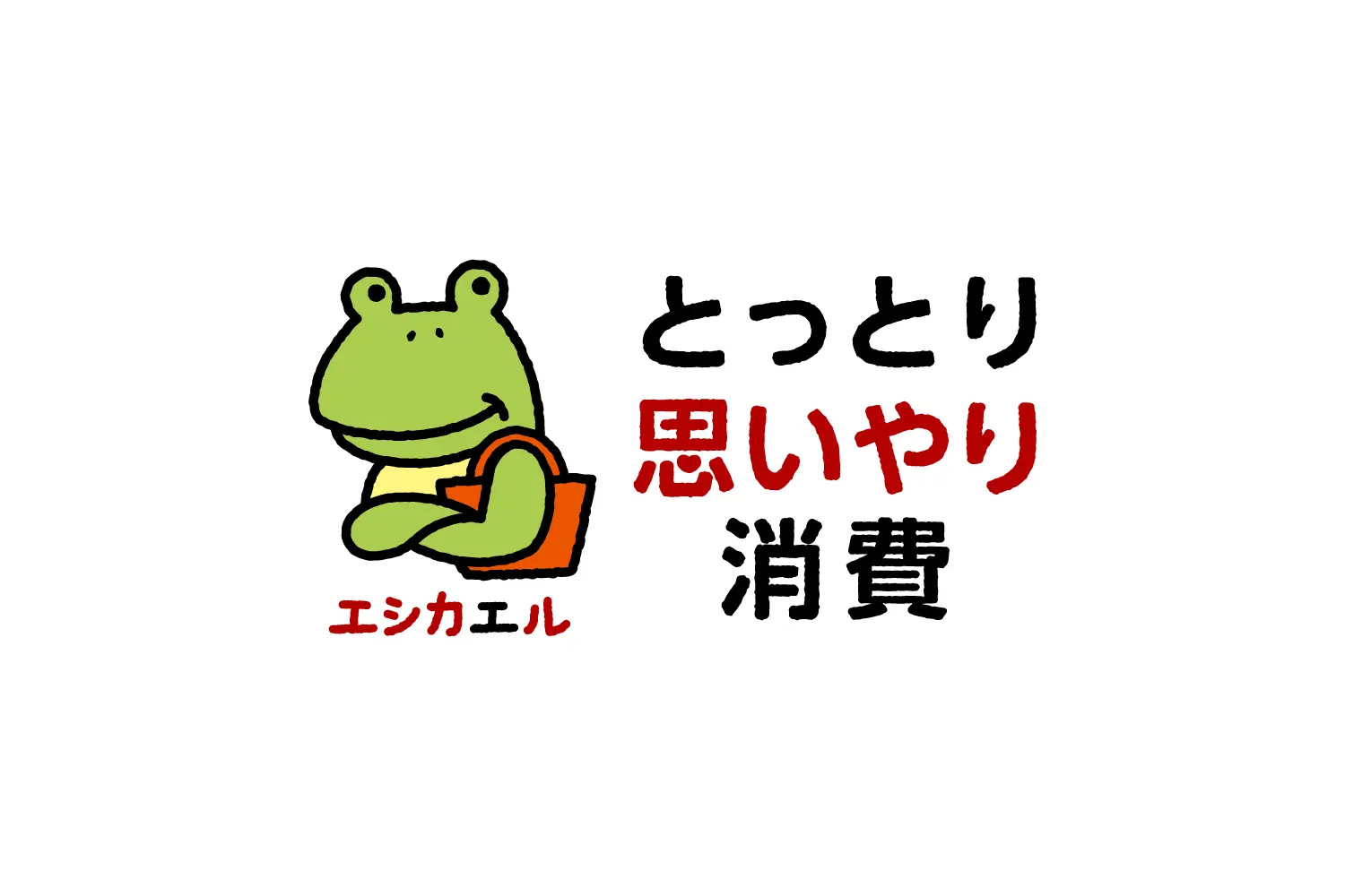 環境バランスを測る指標生物である「カエル」をモチーフに、「エシカル」と「カエル」を掛け合わせたキャラクター「エシカエル」をシンボルマークとして制作しました。